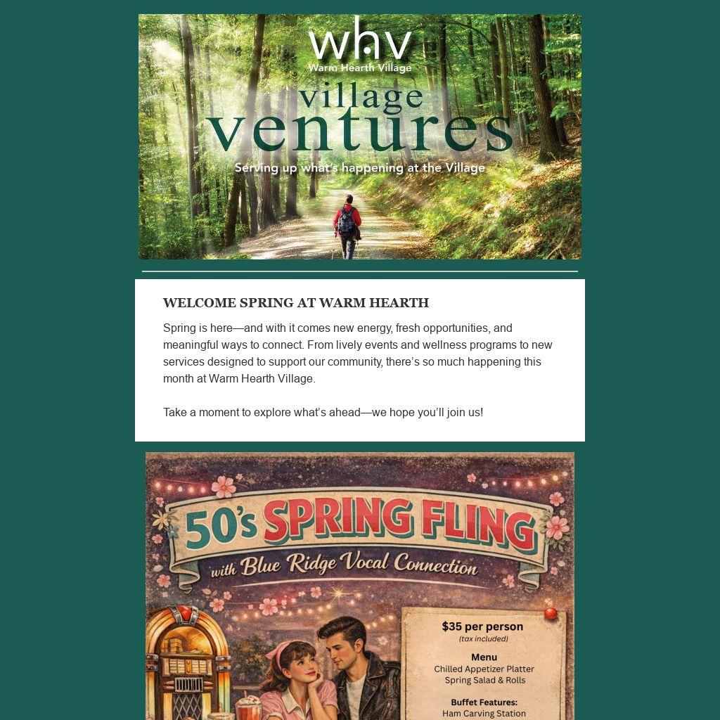 Spring is here—and with it comes new energy, fresh opportunities, and meaningful ways to connect. From lively events and wellness programs to new services designed to support our community, there’s so much happening this month at Warm Hearth Village.