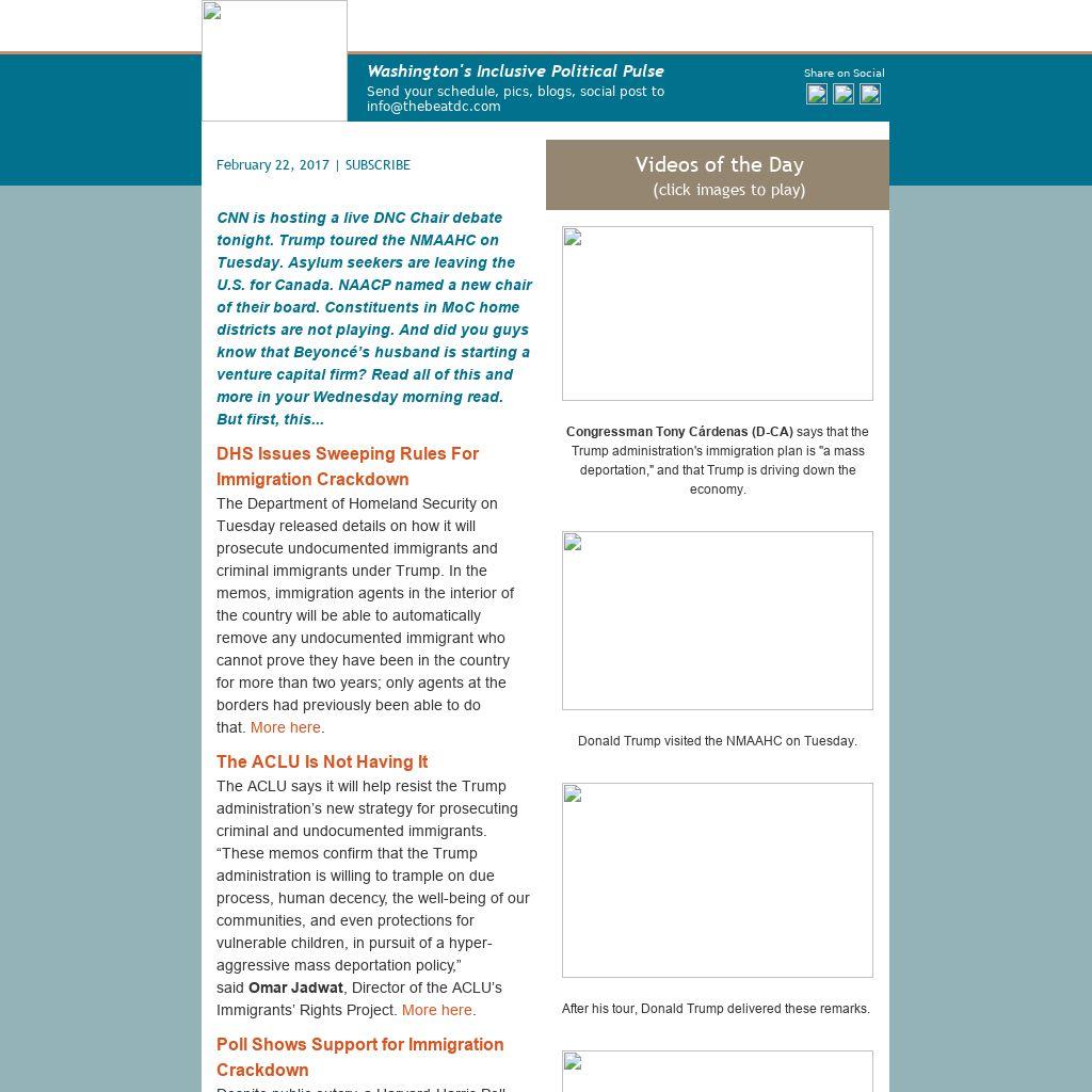CNN is hosting a live DNC Chair debate tonight. Trump toured the NMAAHC on Tuesday. Asylum seekers are leaving the U.S. for Canada. NAACP named a new chair of their board. Constituents in MoC home districts are not playing. And did you guys know that Beyoncé’s husband is starting a venture capital firm? Read all of this and more in your Wednesday morning read. But first, this...