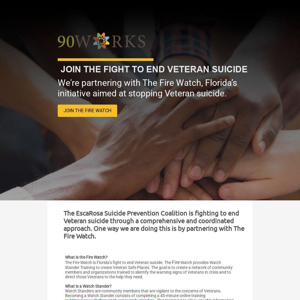 The Fire Watch is Florida’s fight to end Veteran suicide. The Fire Watch provides Watch Stander Training to create Veteran Safe Places. The goal is to create a network of community members and organizations trained to identify the warning signs of Veterans in crisis and to direct those Veterans to the help they need.