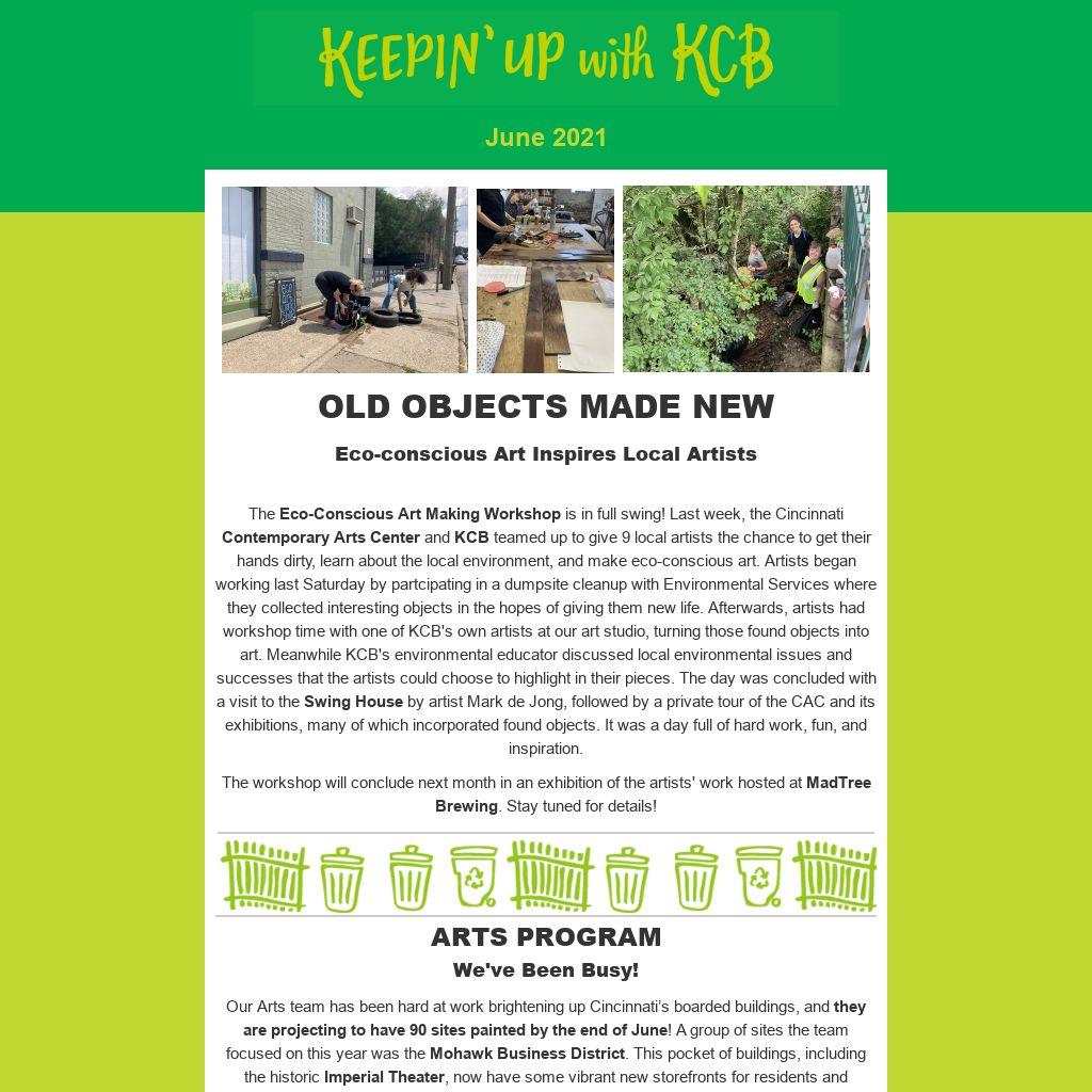 The Eco-Conscious Art Making Workshop is in full swing! Last week, the Cincinnati Contemporary Arts Center and KCB teamed up to give 9 local artists the chance to get their hands dirty, learn about the local environment, and make eco-conscious art. Artists began working last Saturday by partcipating in a dumpsite cleanup with Environmental Services where they collected interesting objects in the hopes of giving them new life. Afterwards, artists had workshop time with one of KCB's own artists at our art studio, turning those found objects into art. Meanwhile KCB's environmental educator discussed local environmental issues and successes that the artists could choose to highlight in their pieces. The day was concluded with a visit to the Swing House by artist Mark de Jong, followed by a private tour of the CAC and its exhibitions, many of which incorporated found objects. It was a day full of hard work, fun, and inspiration.