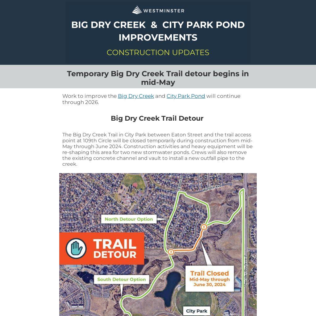 Thank you for your patience as we complete improvements to City Park Pond and Big Dry Creek.