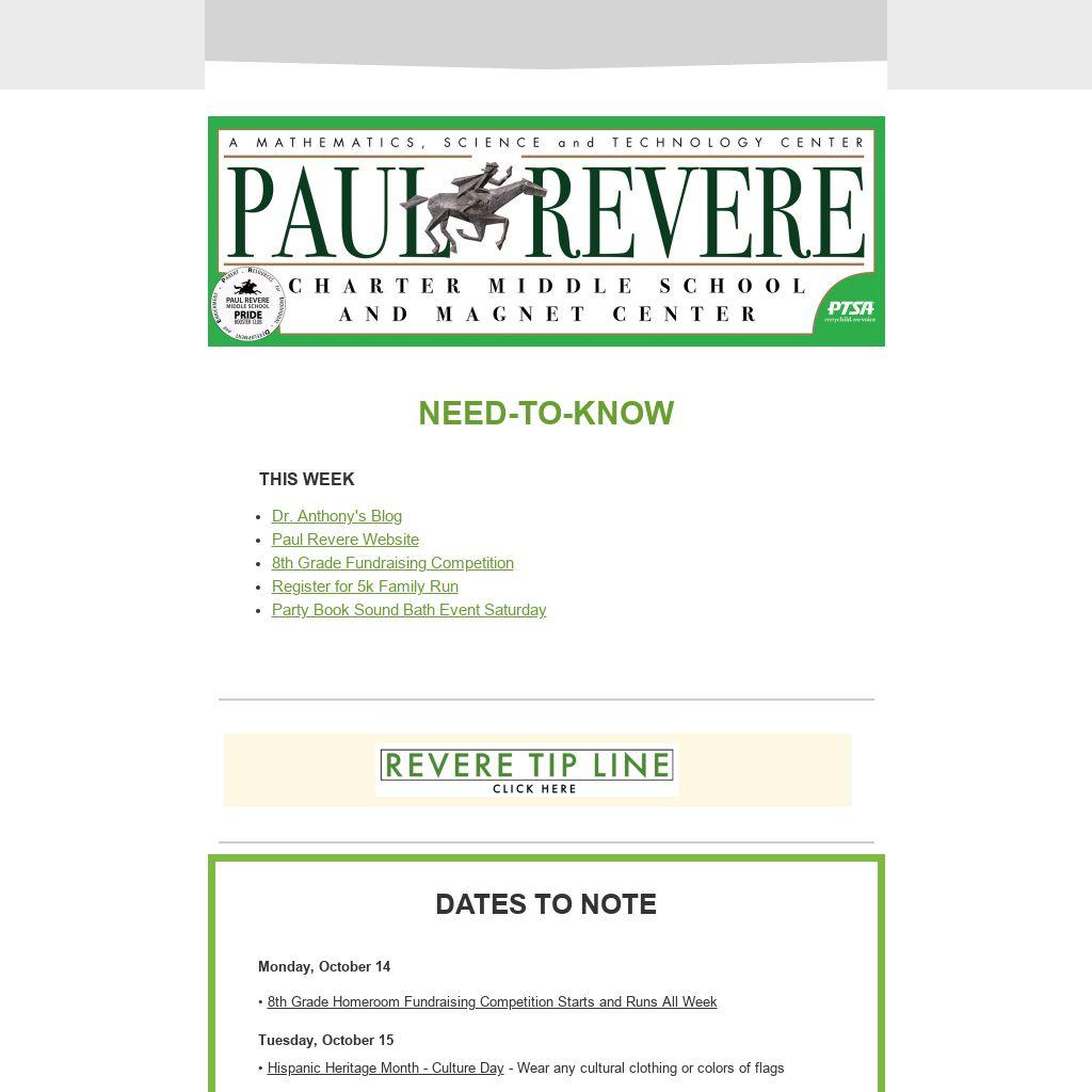 Disclaimer: The businesses mentioned in this newsletter or on the Paul Revere website do not constitute an endorsement from the PRIDE Booster Club or Paul Revere Middle School.