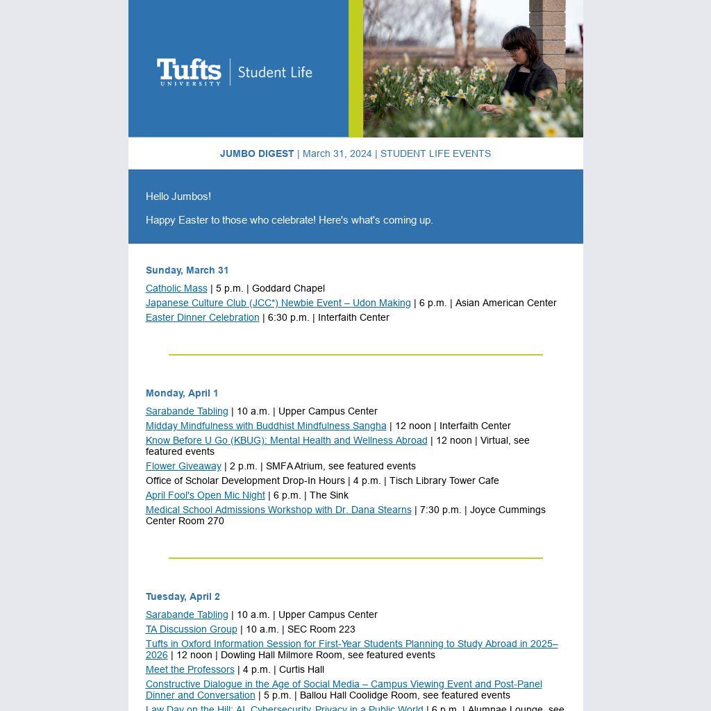 | Make a JUMBO Impact: Tufts Student Giving's (TSG) April Giving! |