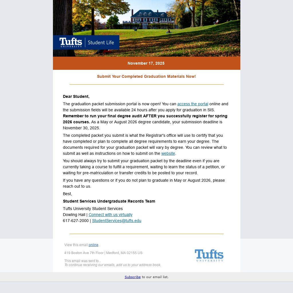 If you have any questions or if you do not plan to graduate in May or August 2026, please reach out to us.
