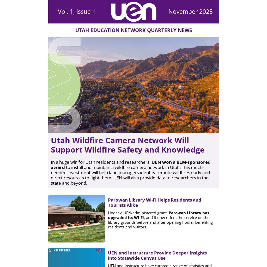 In a huge win for Utah residents and researchers, UEN won a BLM-sponsored award to install and maintain a wildfire camera network in Utah. This much-needed investment will help land managers identify remote wildfires early and direct resources to fight them. UEN will also provide data to researchers in the state and beyond.