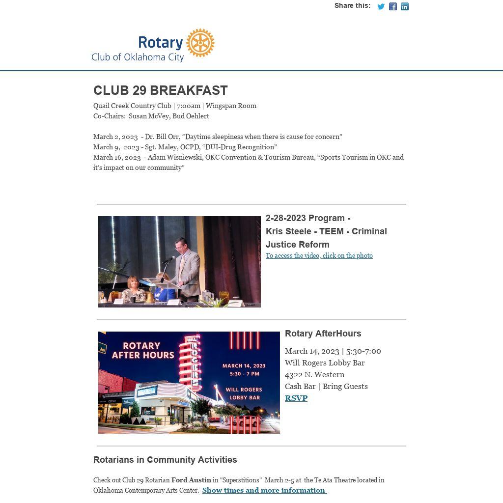 June 13, 2023 - Rotary Meeting location changed to National Cowboy & Western Heritage Museum