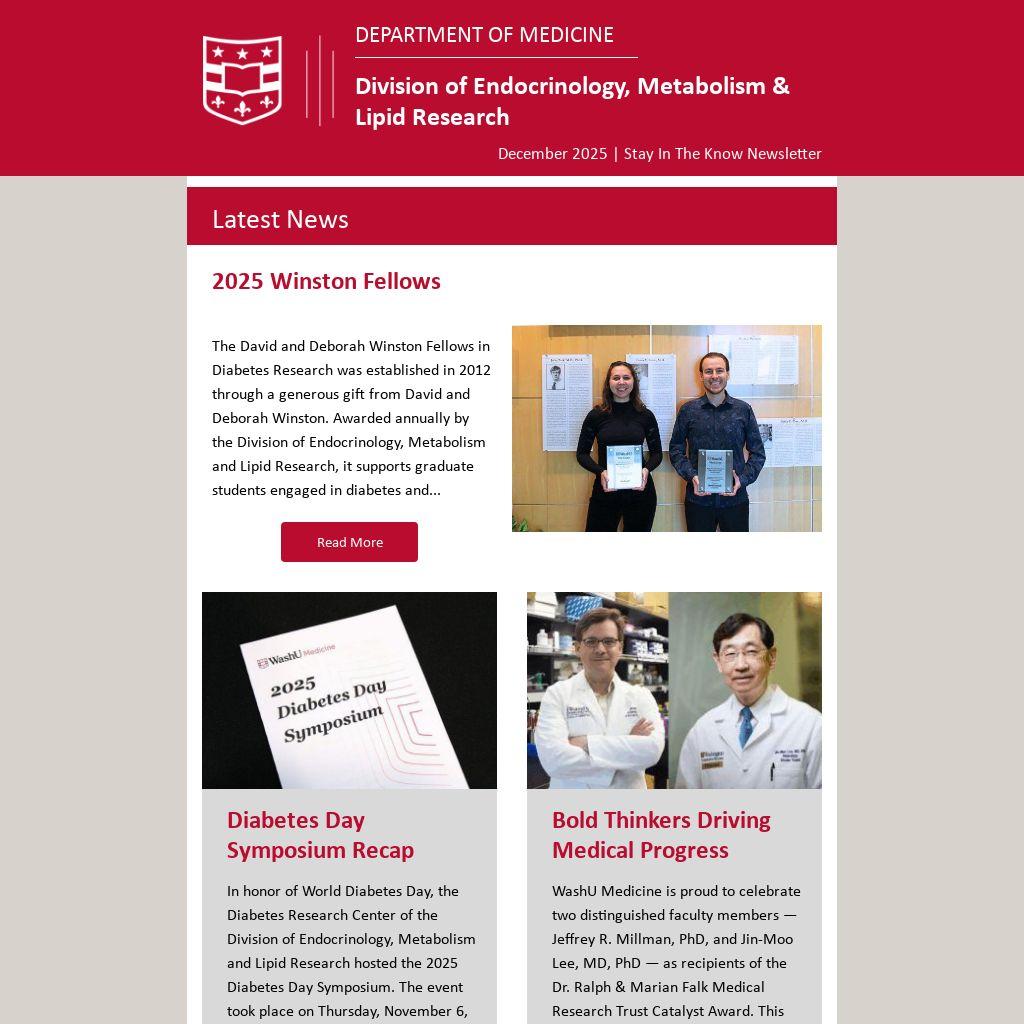 In honor of World Diabetes Day, the Diabetes Research Center of the Division of Endocrinology, Metabolism and Lipid Research hosted the 2025 Diabetes Day Symposium. The event took place on Thursday, November 6, at WashU Medicine’s Eric P. Newman Education Center. The symposium...