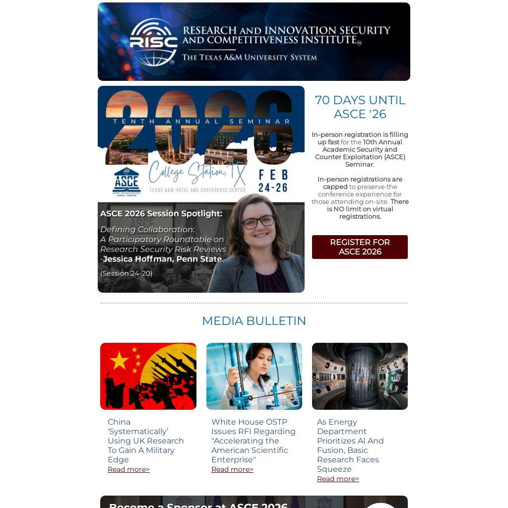 In-person registration is filling up fast for the 10th Annual Academic Security and Counter Exploitation (ASCE) Seminar.