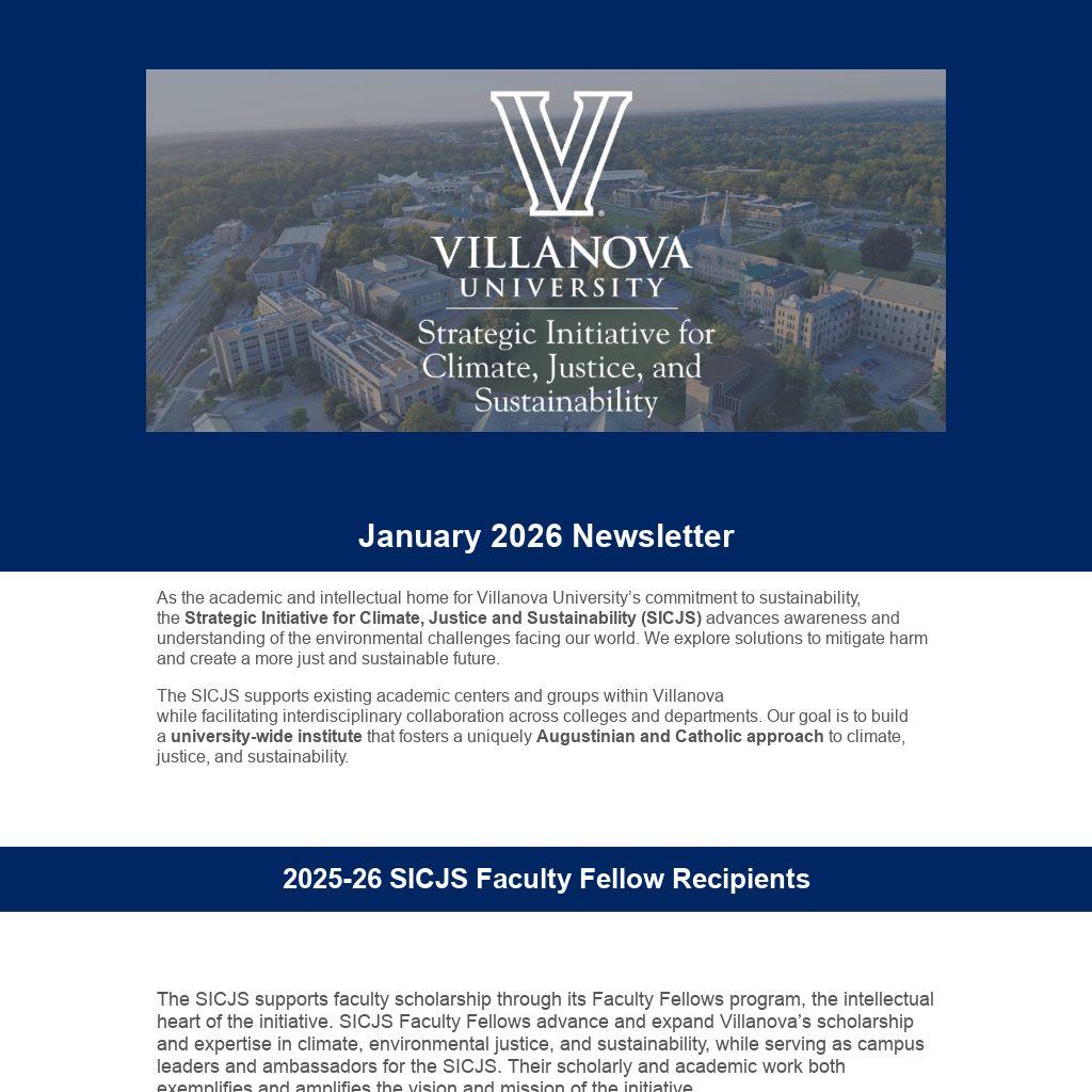 As the academic and intellectual home for Villanova University’s commitment to sustainability, the Strategic Initiative for Climate, Justice and Sustainability (SICJS) advances awareness and understanding of the environmental challenges facing our world. We explore solutions to mitigate harm and create a more just and sustainable future.
