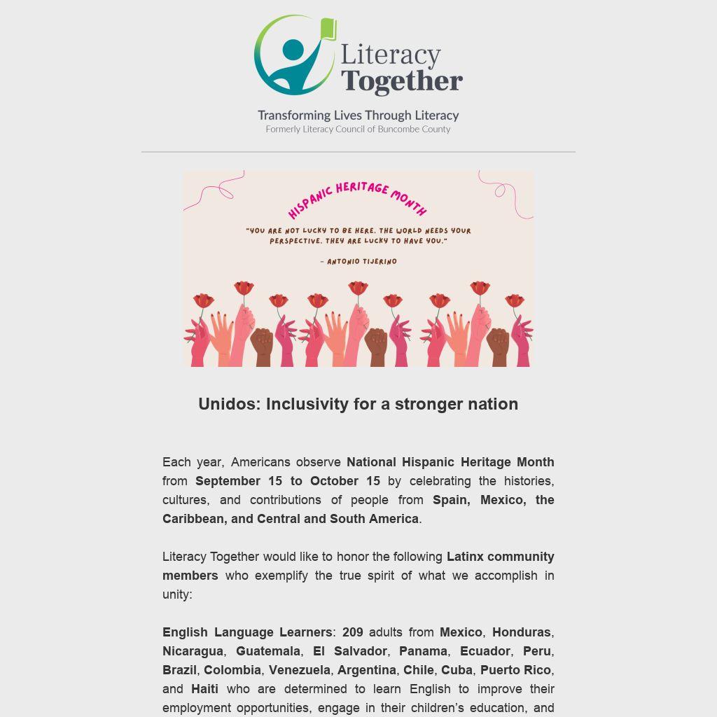 Literacy Together would like to honor the following Latinx community members who exemplify the true spirit of what we accomplish in unity: