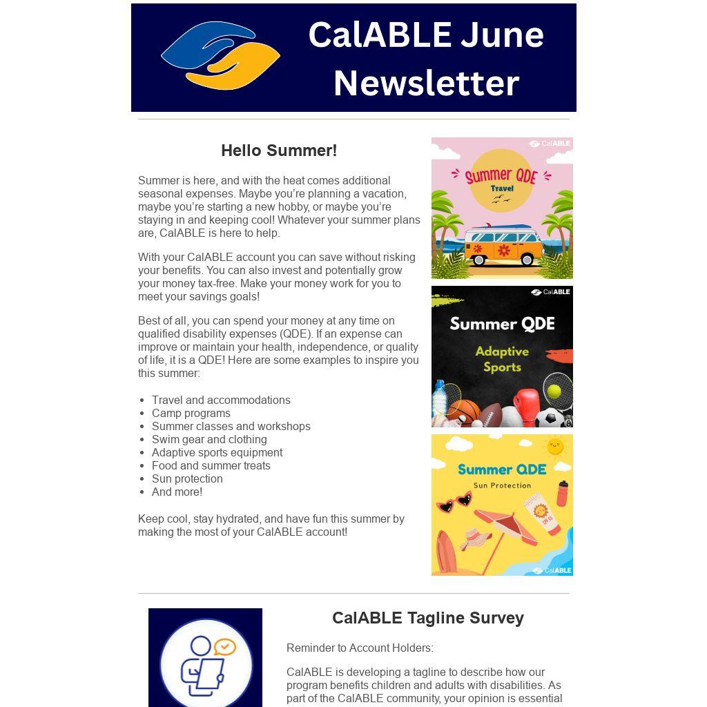 Summer is here, and with the heat comes additional seasonal expenses. Maybe you’re planning a vacation, maybe you’re starting a new hobby, or maybe you’re staying in and keeping cool! Whatever your summer plans are, CalABLE is here to help.