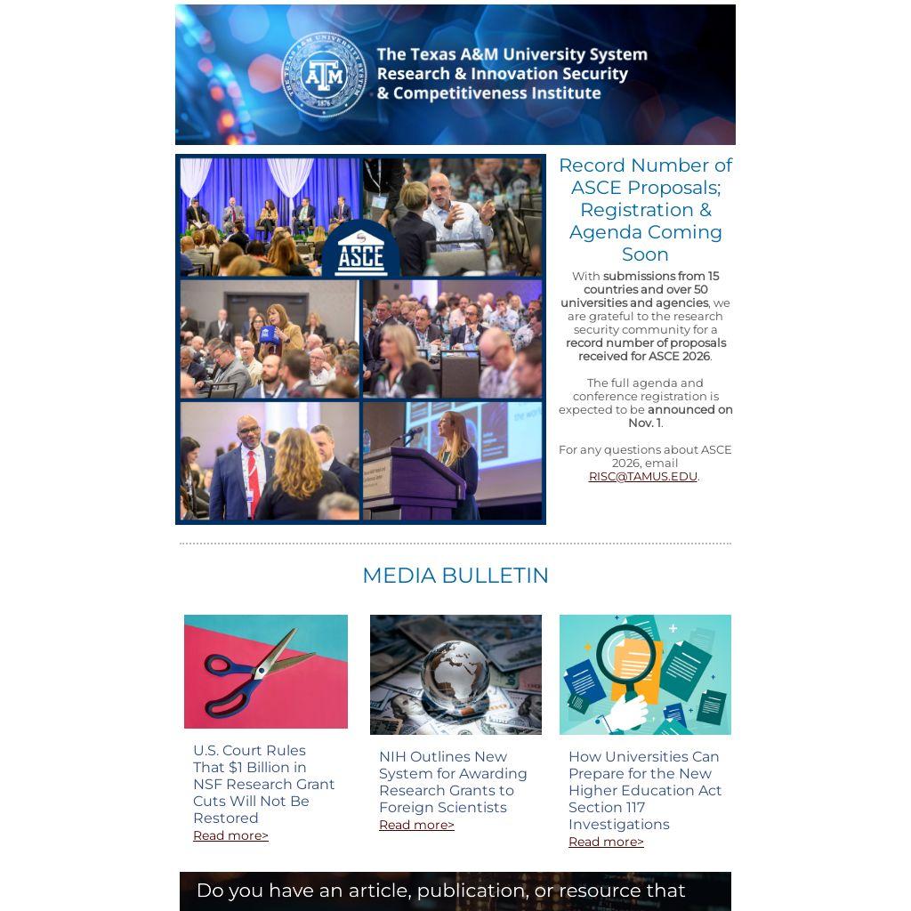 For any questions about ASCE 2026, email RISC@TAMUS.EDU.