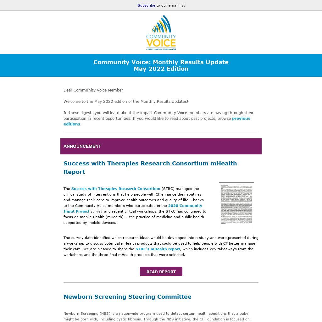 Dear Community Voice Member,