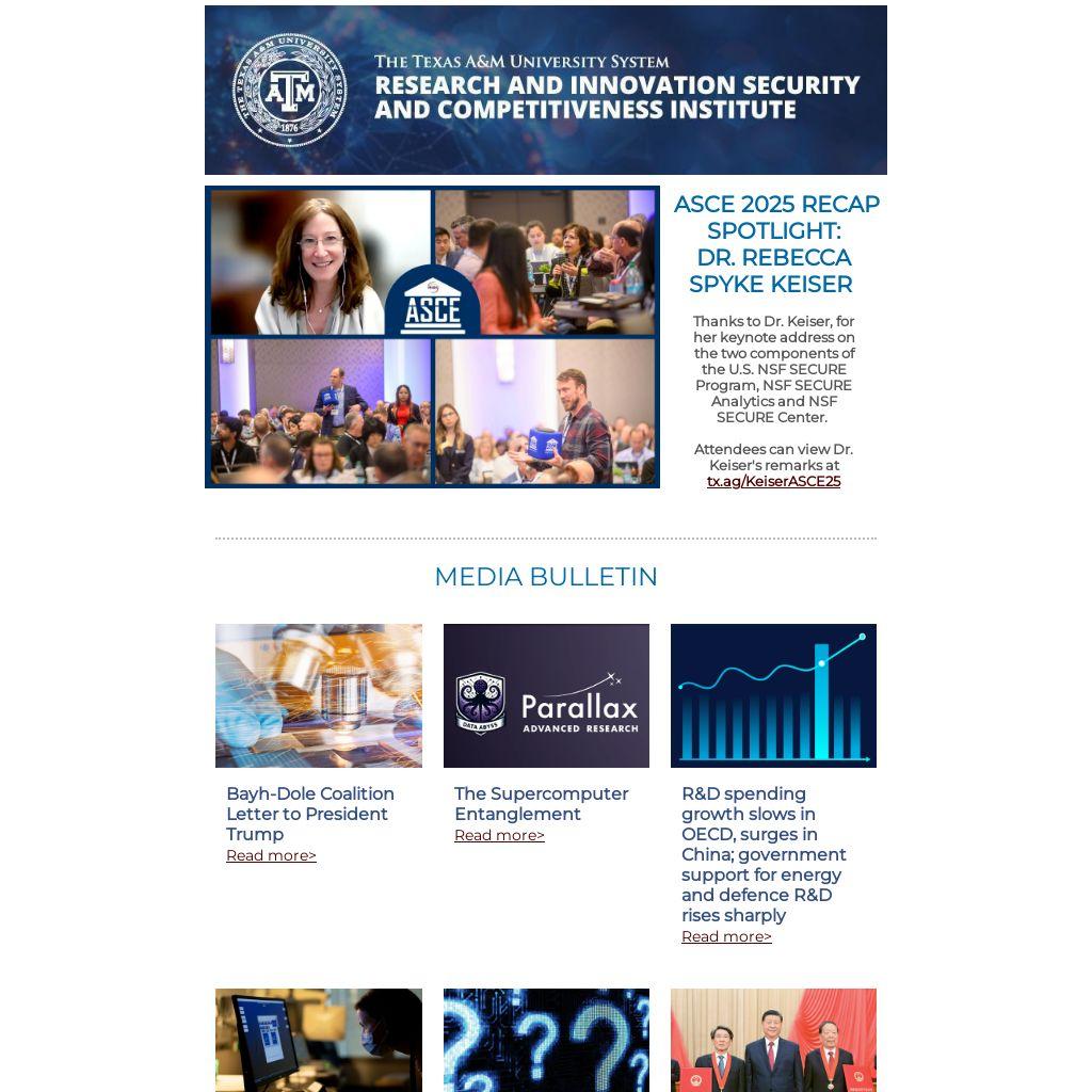 Attendees can view Dr. Keiser's remarks at tx.ag/KeiserASCE25 |