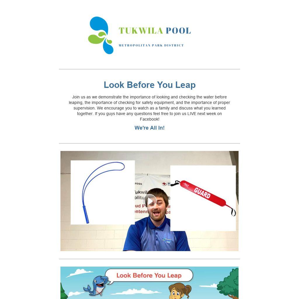 Youth and adults are encouraged to participate in our Live Q&A, where we'll be answering all of your Water Safety and Swim Lessons questions. Please submit your questions to jstiles@tukwilapool.org or jstowers@tukwilapool.org