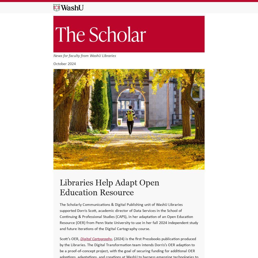 The Scholarly Communications & Digital Publishing unit of WashU Libraries supported Dorris Scott, academic director of Data Services in the School of Continuing & Professional Studies (CAPS), in her adaptation of an Open Education Resource (OER) from Penn State University to use in her fall 2024 independent study and future iterations of the Digital Cartography course.