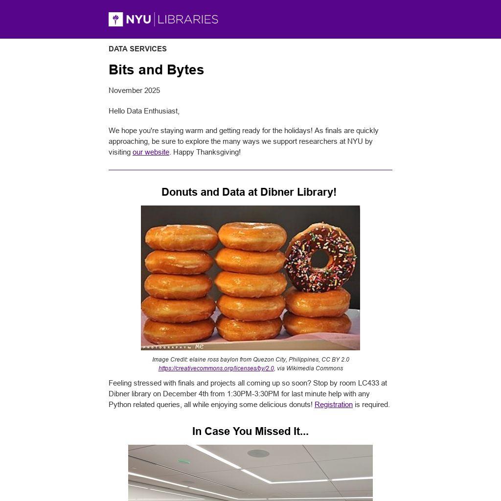 We hope you're staying warm and getting ready for the holidays! As finals are quickly approaching, be sure to explore the many ways we support researchers at NYU by visiting our website. Happy Thanksgiving!