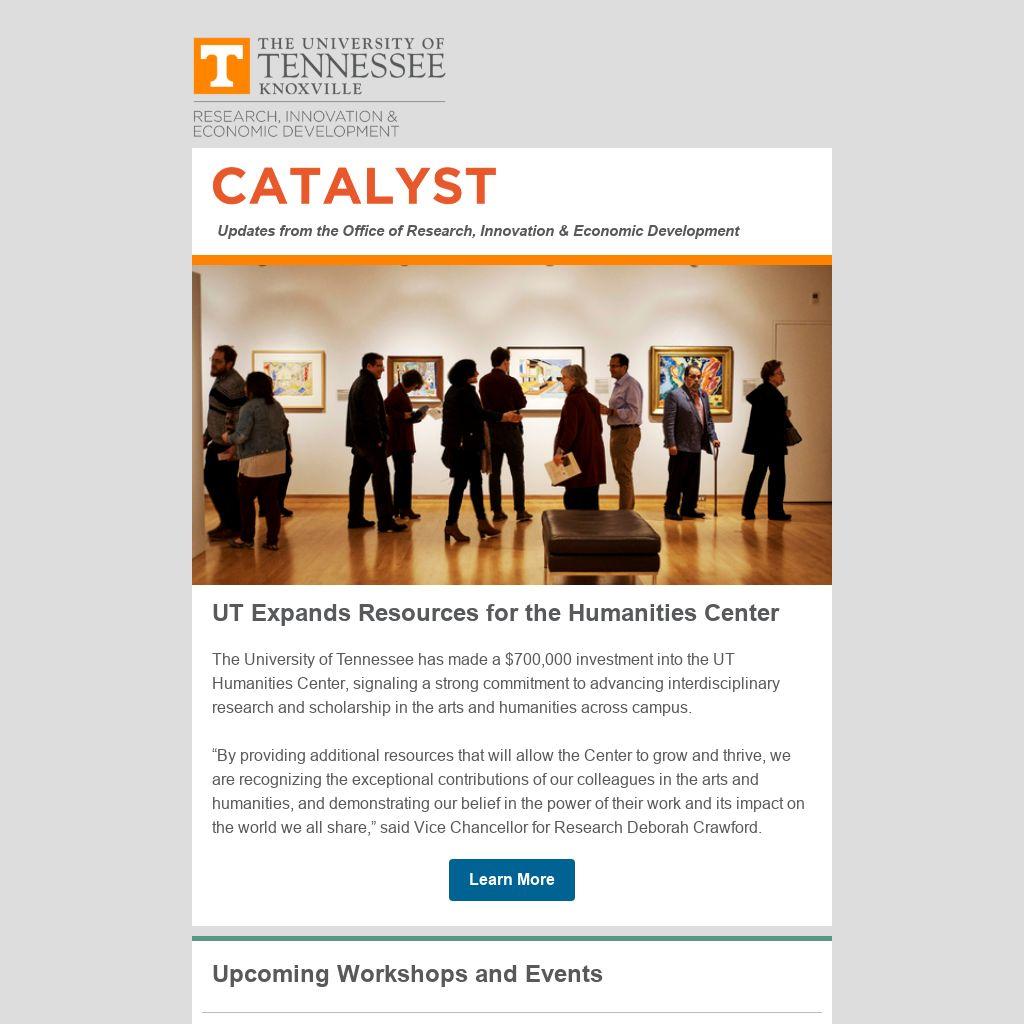 Catalyst provides a deeper understanding of the services, opportunities, and expertise offered by ORIED. Each issue showcases our teams and initiatives, provides critical updates from funders, shares upcoming events and workshops, and celebrates research achievements across campus. Catalyst also communicates the impact of our work on the UT research enterprise, providing transparency and accountability to the community we serve.
