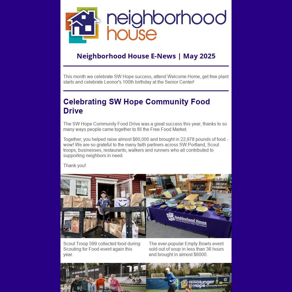 If you know someone who should know about the work Neighborhood House is doing in your community, please forward this newsletter to them. We love sharing stories about the work we do!