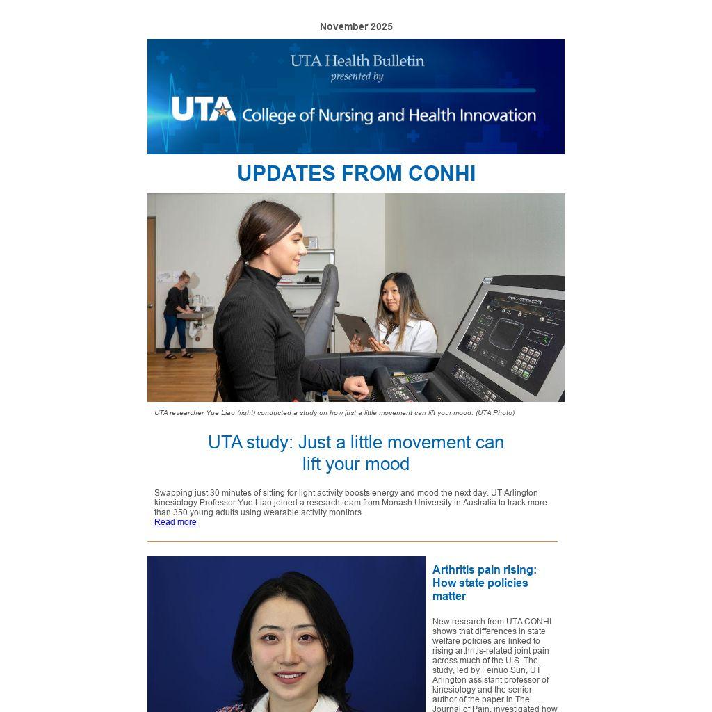 Swapping just 30 minutes of sitting for light activity boosts energy and mood the next day. UT Arlington kinesiology Professor Yue Liao joined a research team from Monash University in Australia to track more than 350 young adults using wearable activity monitors.