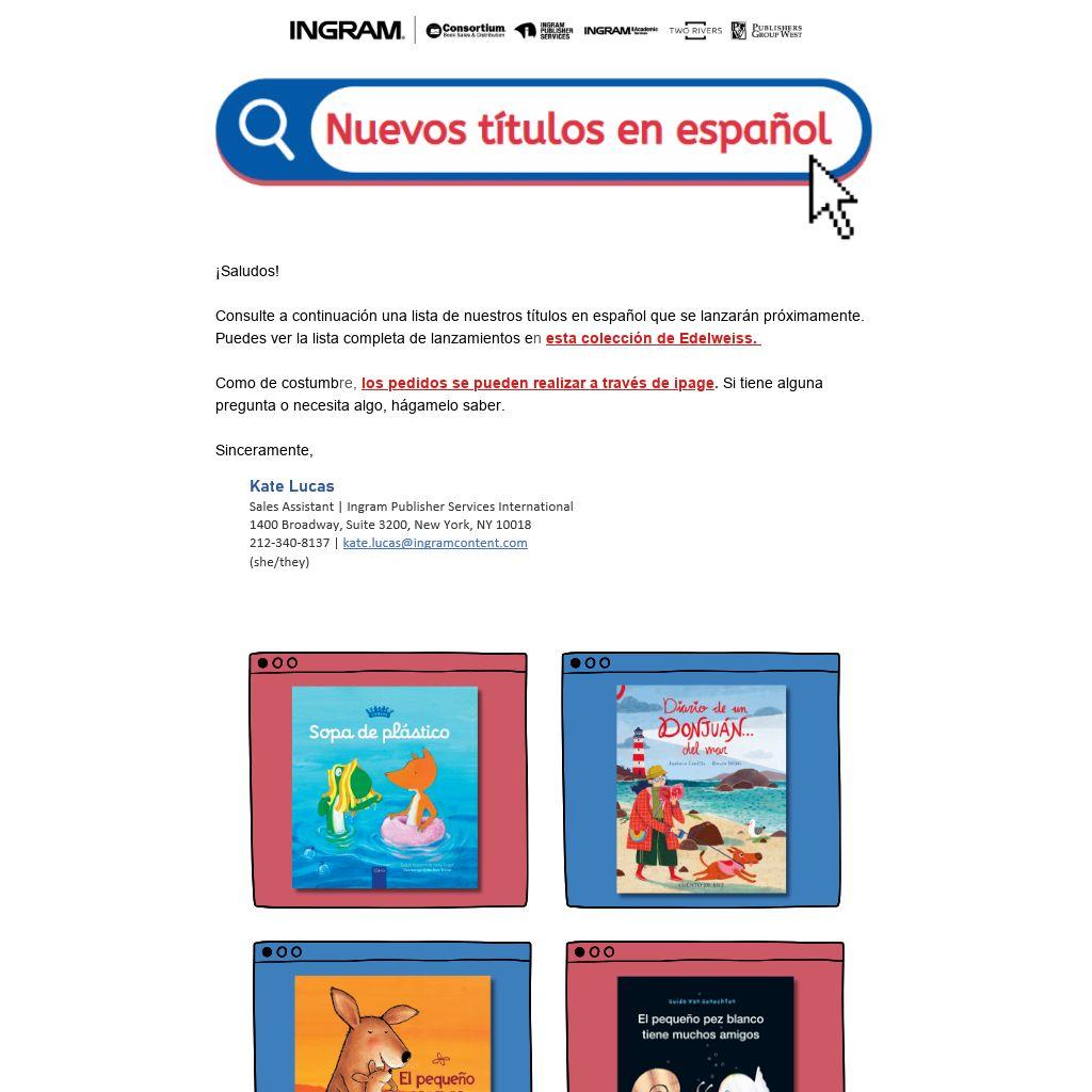 Consulte a continuación una lista de nuestros títulos en español que se lanzarán próximamente. Puedes ver la lista completa de lanzamientos en esta colección de Edelweiss.