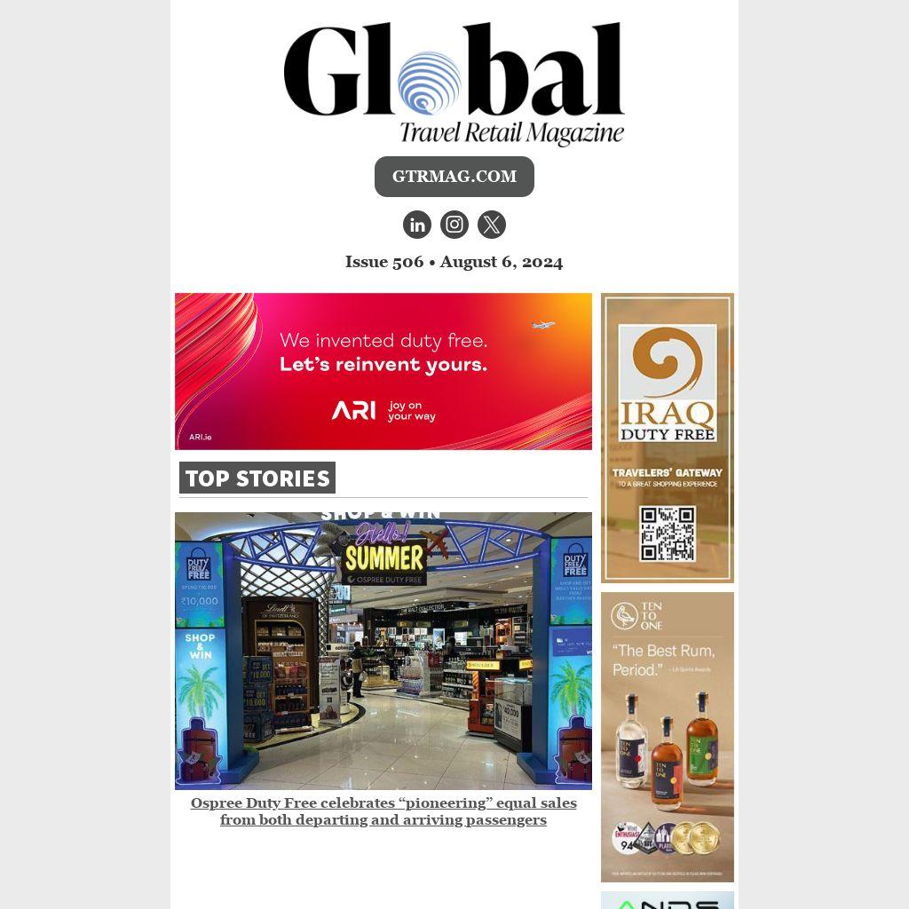Ospree Duty Free celebrates “pioneering” equal sales from both departing and arriving passengers