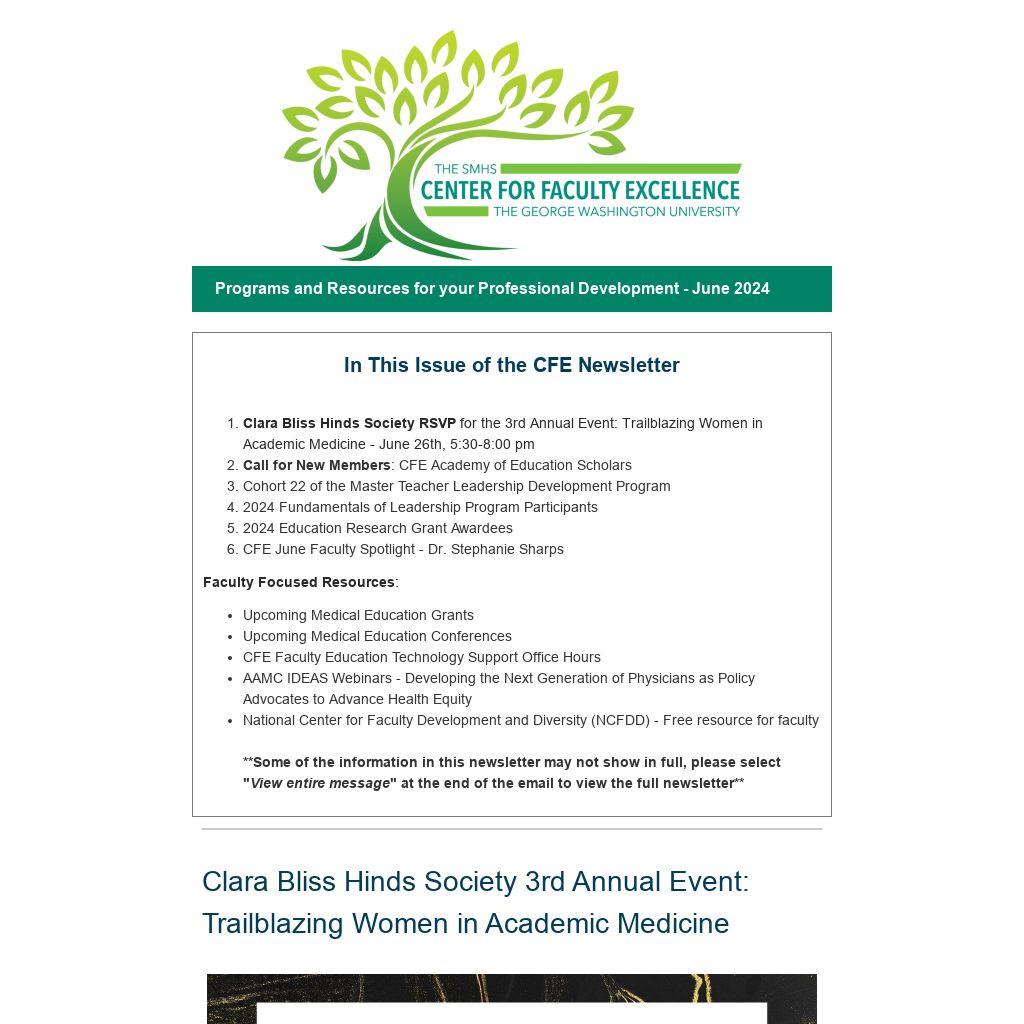 - Clara Bliss Hinds Society RSVP for the 3rd Annual Event: Trailblazing Women in Academic Medicine - June 26th, 5:30-8:00 pm
