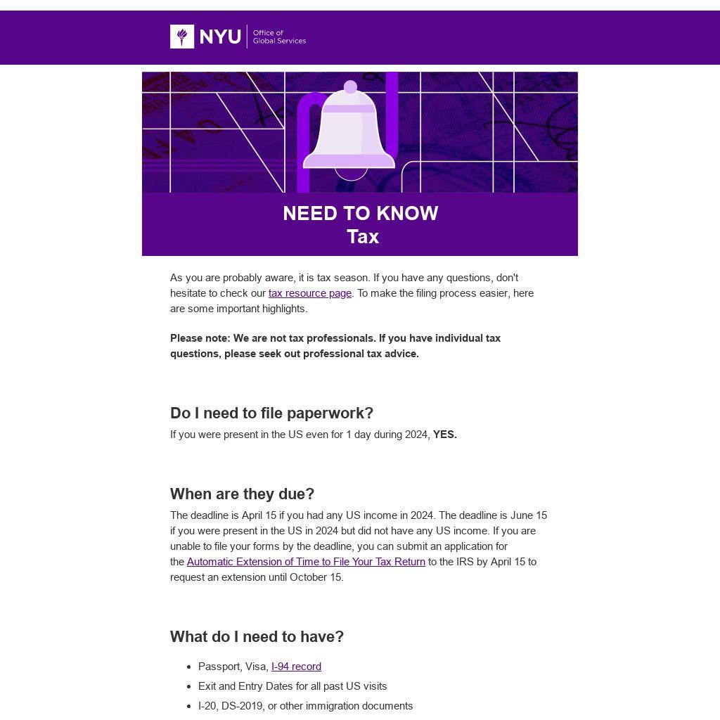 Sprintax will help you easily fulfill your tax obligations by asking you a series of questions and filling in all necessary forms for you. The service is free for all NYU students and scholars to use.