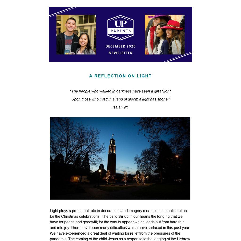 Light plays a prominent role in decorations and imagery meant to build anticipation for the Christmas celebrations. It helps to stir up in our hearts the longing that we have for peace and goodwill; for the way to appear which leads out from hardship and into joy. There have been many difficulties which have surfaced in this past year. We have experienced a great deal of waiting for relief from the pressures of the pandemic. The coming of the child Jesus as a response to the longing of the Hebrew people is a powerful reminder that our waiting and longing can find fulfillment. May the many lights that you encounter be an encouragement at this time. May this time between semesters be for you and your family a space of rest, refreshment, and peace.