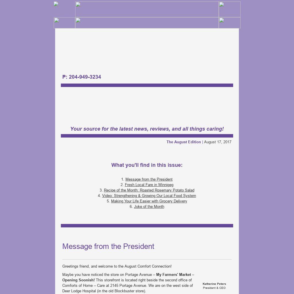 Greetings friend, and welcome to the August Comfort Connection!