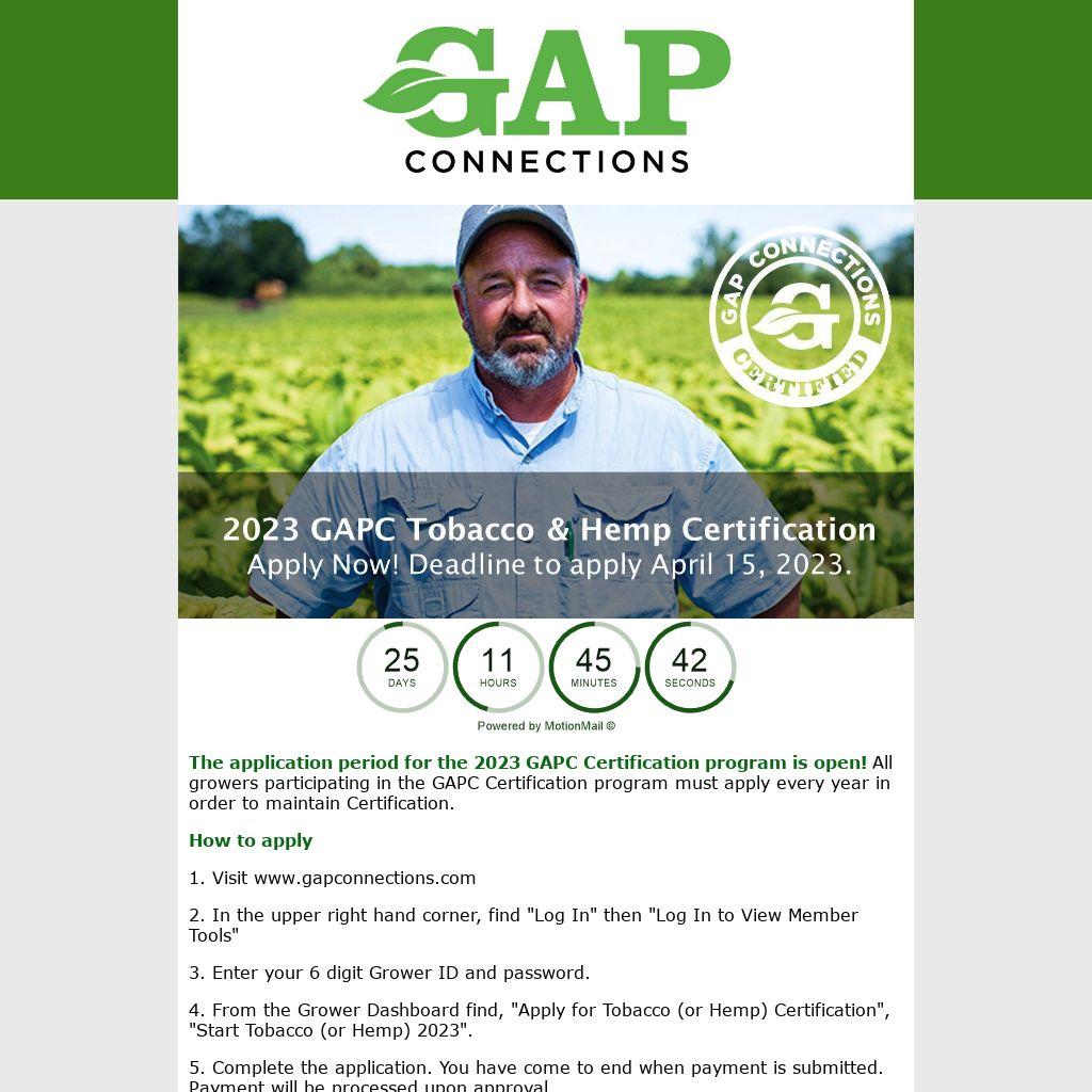 More information about the Tobacco and Hemp GAPC Certification programs can be found on our website.