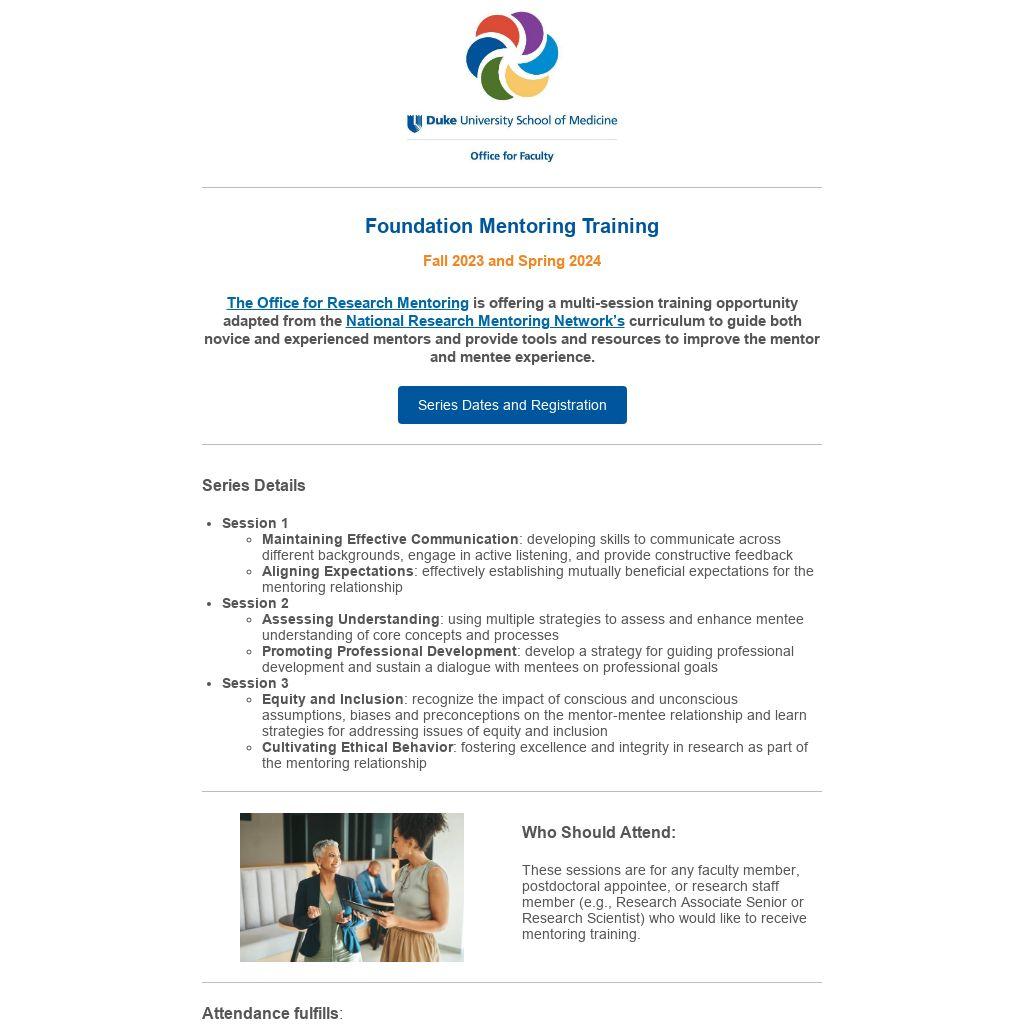 200 level RCR credit. The Foundation Mentor Training will be offered as three (2 hour) virtual sessions in both Fall 2023 and Spring 2024. You must complete each session to receive credit for the training.