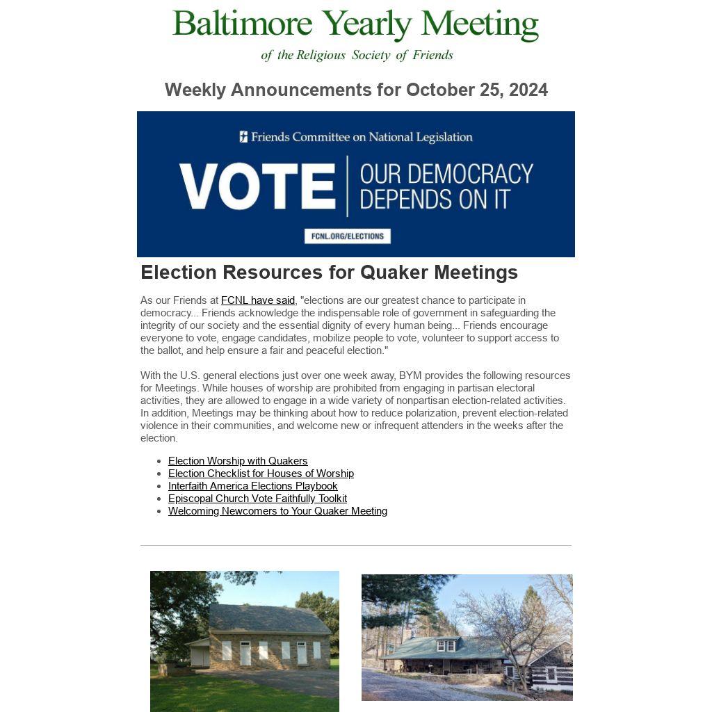 With the U.S. general elections just over one week away, BYM provides the following resources for Meetings. While houses of worship are prohibited from engaging in partisan electoral activities, they are allowed to engage in a wide variety of nonpartisan election-related activities. In addition, Meetings may be thinking about how to reduce polarization, prevent election-related violence in their communities, and welcome new or infrequent attenders in the weeks after the election.