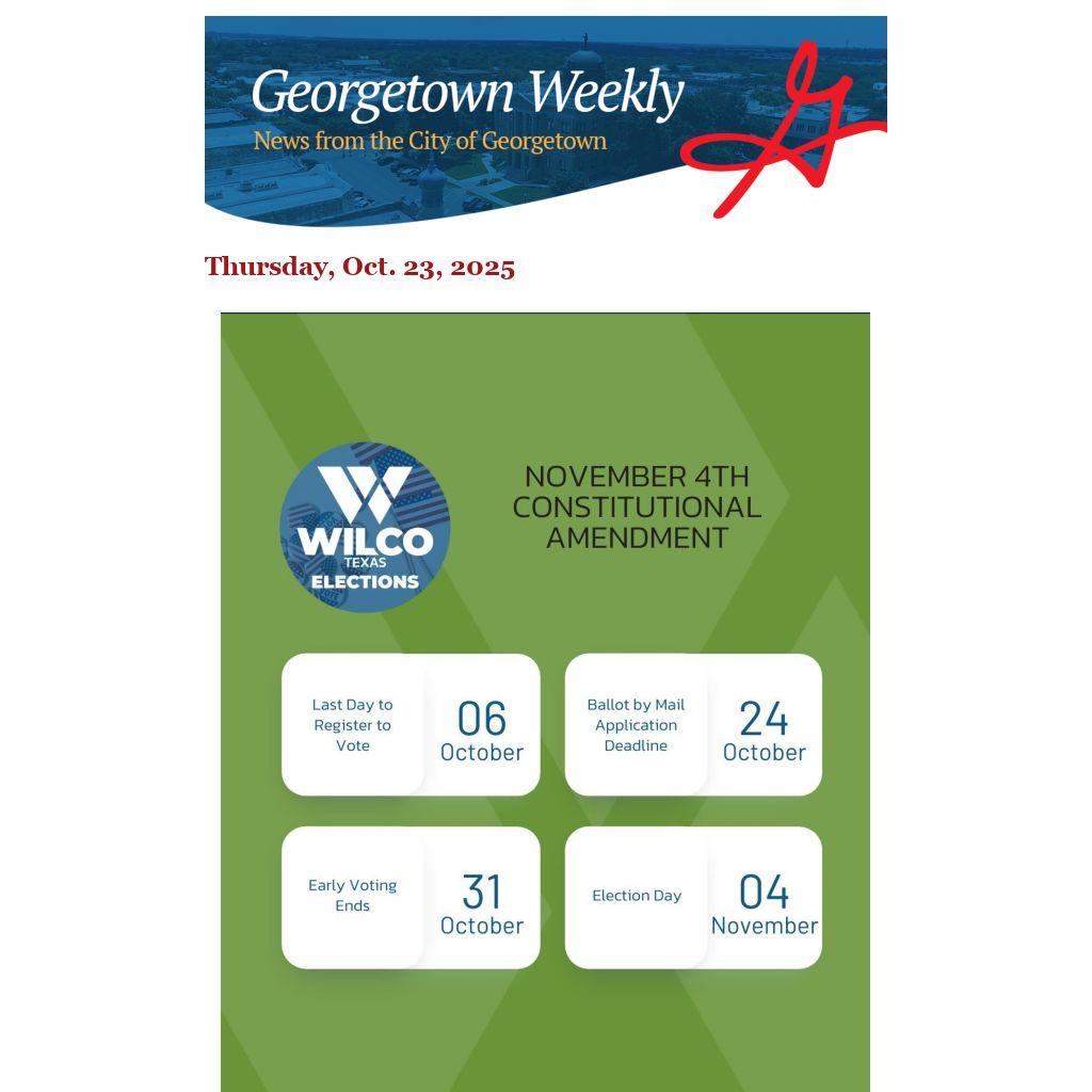 Tuesday’s Georgetown City Council workshop & meeting agenda + how to participate have been posted. Enter your email address to receive alerts when agendas are posted.