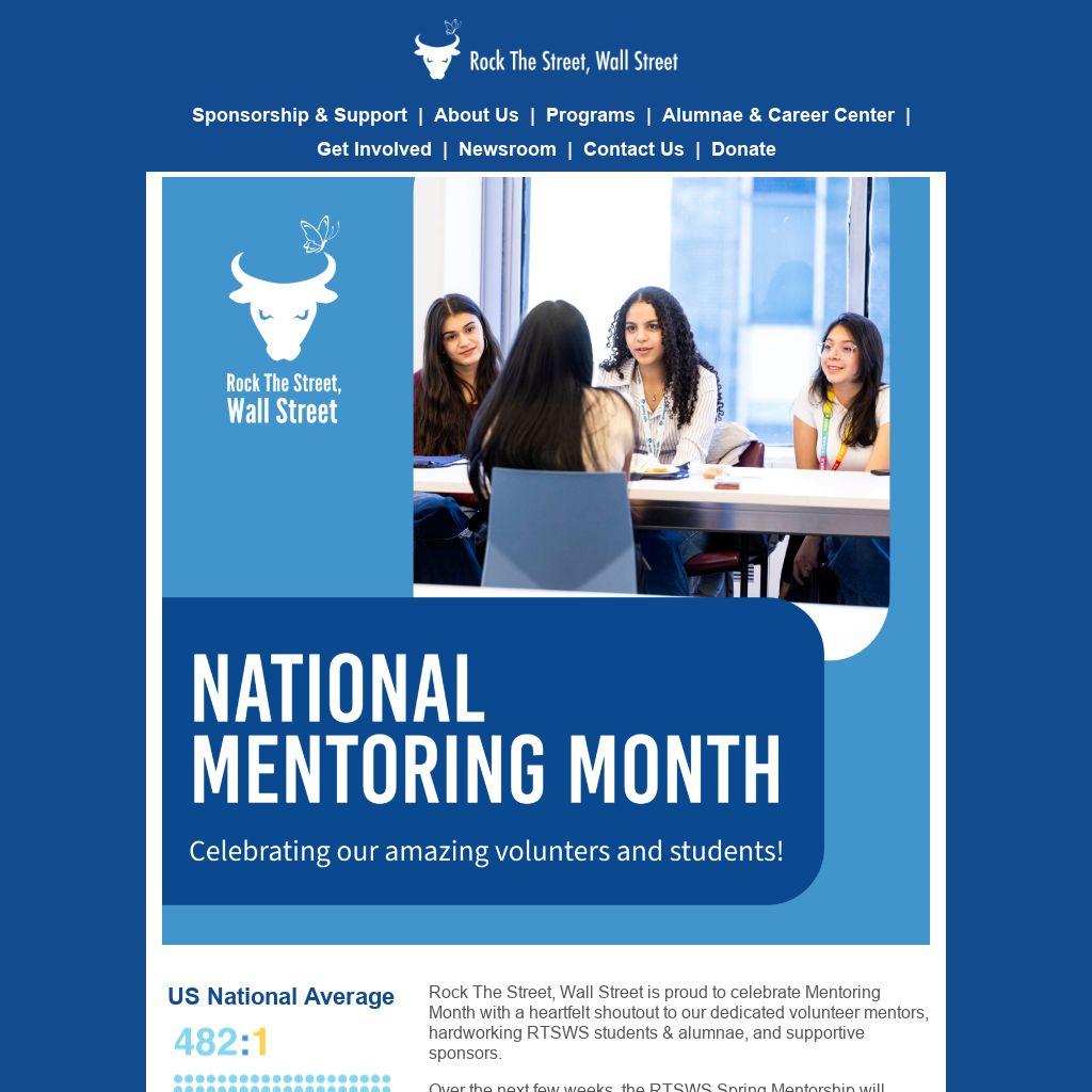 | Rock The Street, Wall Street is proud to celebrate Mentoring Month with a heartfelt shoutout to our dedicated volunteer mentors, hardworking RTSWS students & alumnae, and supportive sponsors.