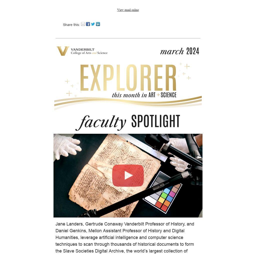 Jane Landers, Gertrude Conaway Vanderbilt Professor of History, and Daniel Genkins, Mellon Assistant Professor of History and Digital Humanities, leverage artificial intelligence and computer science techniques to scan through thousands of historical documents to form the Slave Societies Digital Archive, the world’s largest collection of historical records of Africans in the Atlantic World.