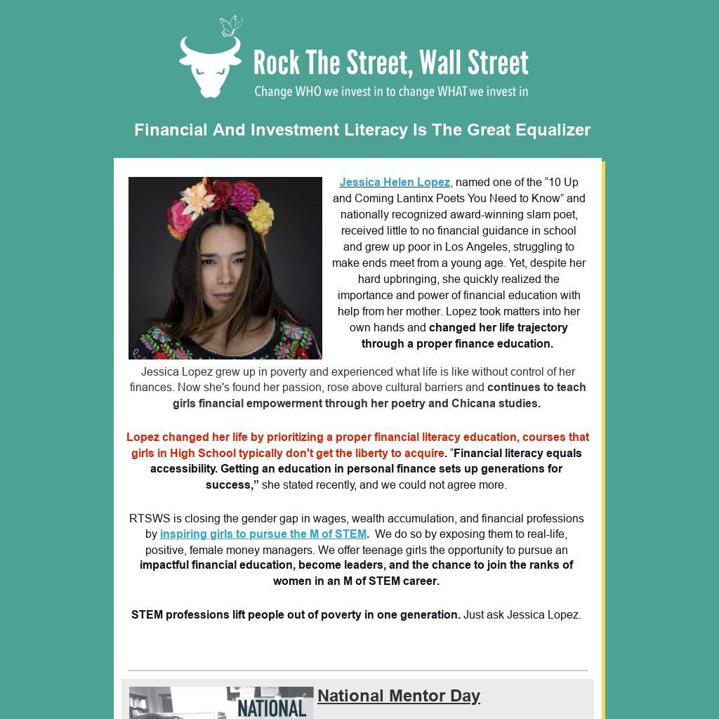 Jessica Helen Lopez, named one of the “10 Up and Coming Lantinx Poets You Need to Know” and nationally recognized award-winning slam poet, received little to no financial guidance in school and grew up poor in Los Angeles, struggling to make ends meet from a young age. Yet, despite her hard upbringing, she quickly realized the importance and power of financial education with help from her mother. Lopez took matters into her own hands and changed her life trajectory through a proper finance education.