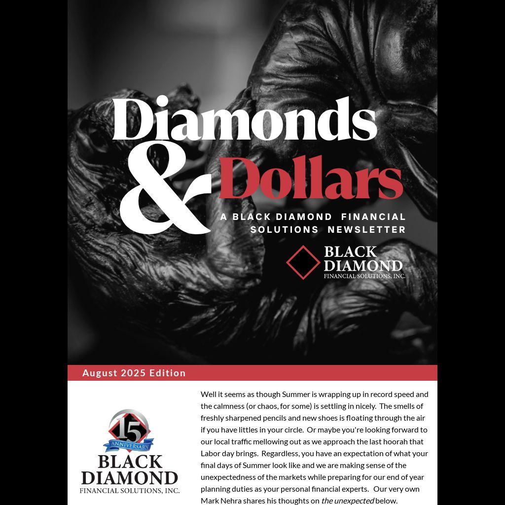 Well it seems as though Summer is wrapping up in record speed and the calmness (or chaos, for some) is settling in nicely. The smells of freshly sharpened pencils and new shoes is floating through the air if you have littles in your circle. Or maybe you're looking forward to our local traffic mellowing out as we approach the last hoorah that Labor day brings. Regardless, you have an expectation of what your final days of Summer look like and we are making sense of the unexpectedness of the markets while preparing for our end of year planning duties as your personal financial experts. Our very own Mark Nehra shares his thoughts on the unexpected below.