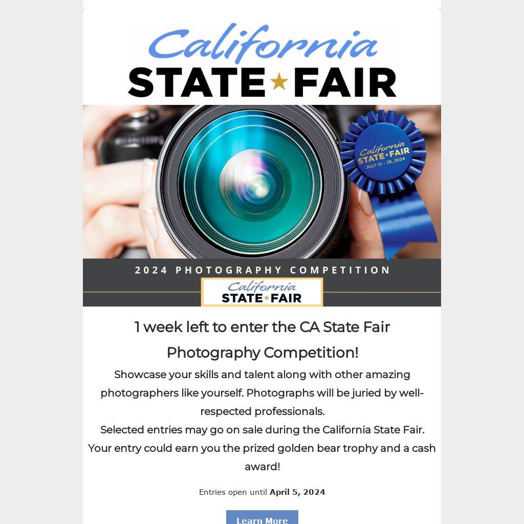 Selected entries may go on sale during the California State Fair. Your entry could earn you the prized golden bear trophy and a cash award!