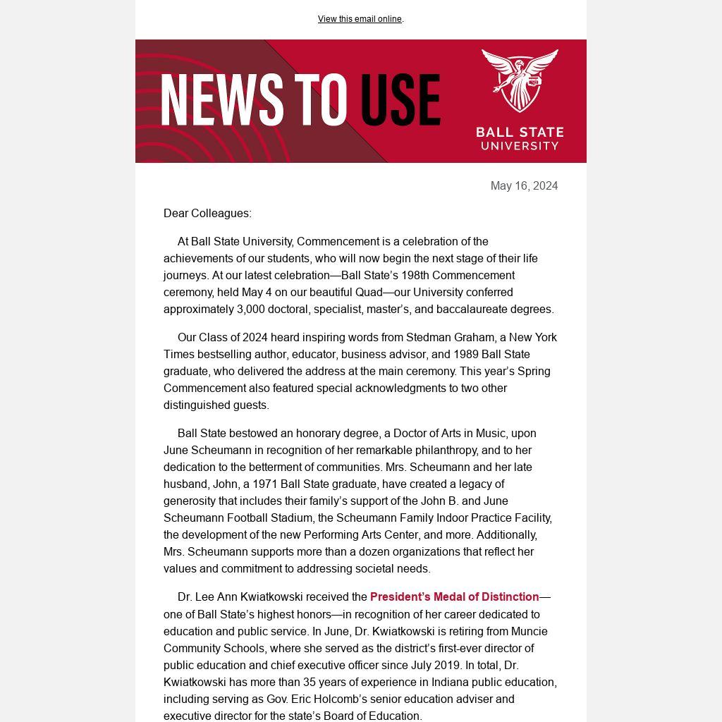Copyright © 2024 Ball State University, All rights reserved. News and updates from Ball State's president.