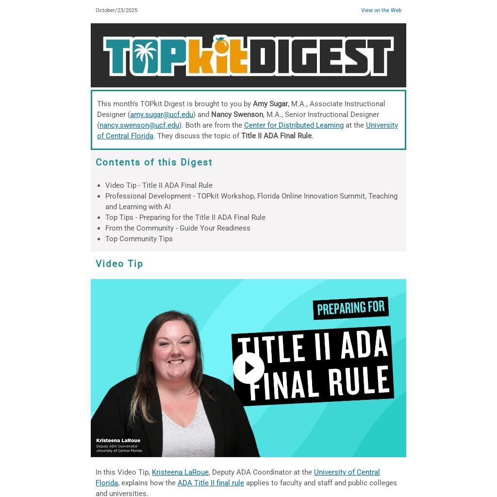 Don’t forget to review the exceptions listed in the final rule, including archived digital content, since this will most likely impact your plan to review and improve the accessibility of digital assets in your faculty development ecosystem.