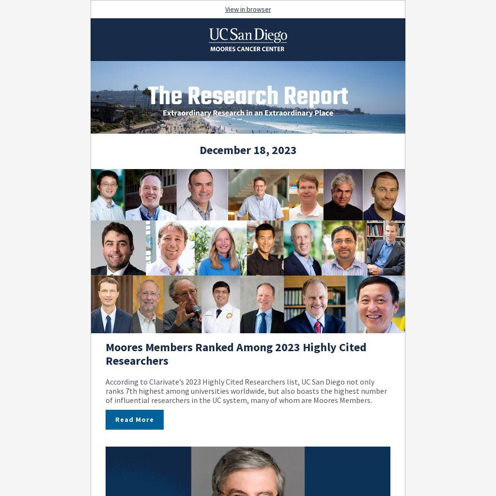 According to Clarivate’s 2023 Highly Cited Researchers list, UC San Diego not only ranks 7th highest among universities worldwide, but also boasts the highest number of influential researchers in the UC system, many of whom are Moores Members.