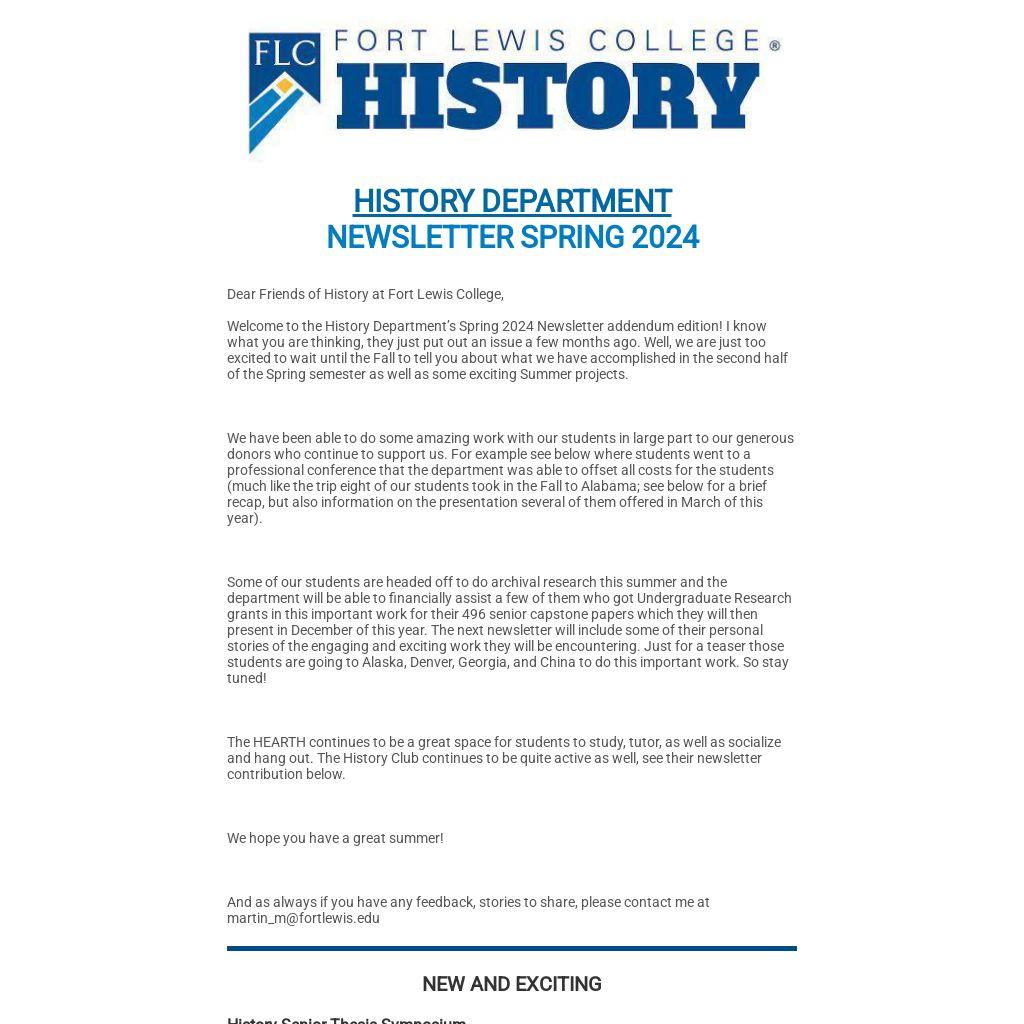Welcome to the History Department’s Spring 2024 Newsletter addendum edition! I know what you are thinking, they just put out an issue a few months ago. Well, we are just too excited to wait until the Fall to tell you about what we have accomplished in the second half of the Spring semester as well as some exciting Summer projects.