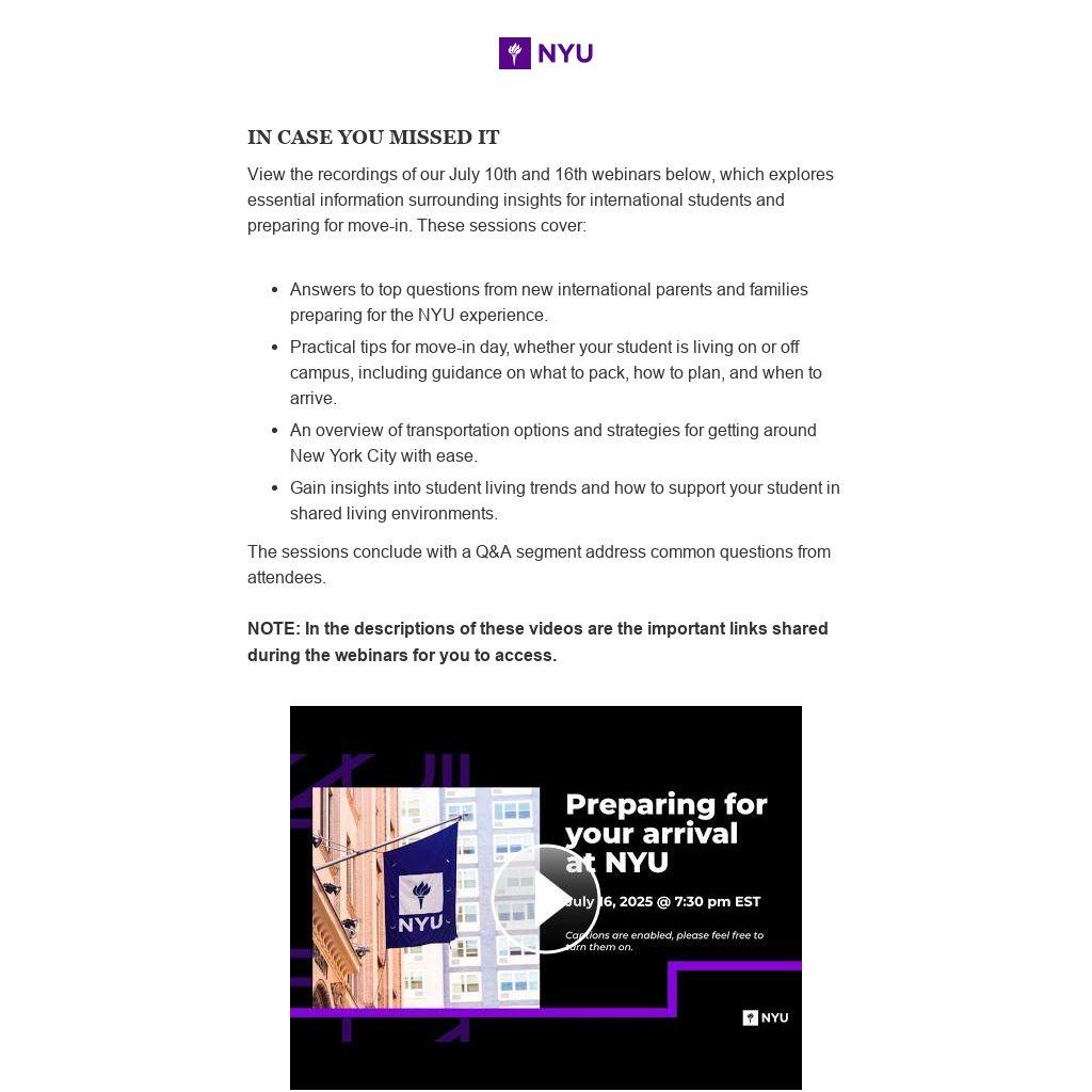 - Answers to top questions from new international parents and families preparing for the NYU experience.