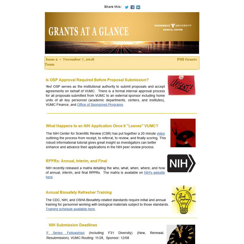 What Happens to an NIH Application Once it "Leaves" VUMC? The NIH Center for Scientific Review (CSR) has put together a 20 minute video outlining the process from receipt, to referral, to review, and finally scoring. This robust informational tutorial gives great insight so investigators can better enhance and advance their applications in the NIH peer review process.