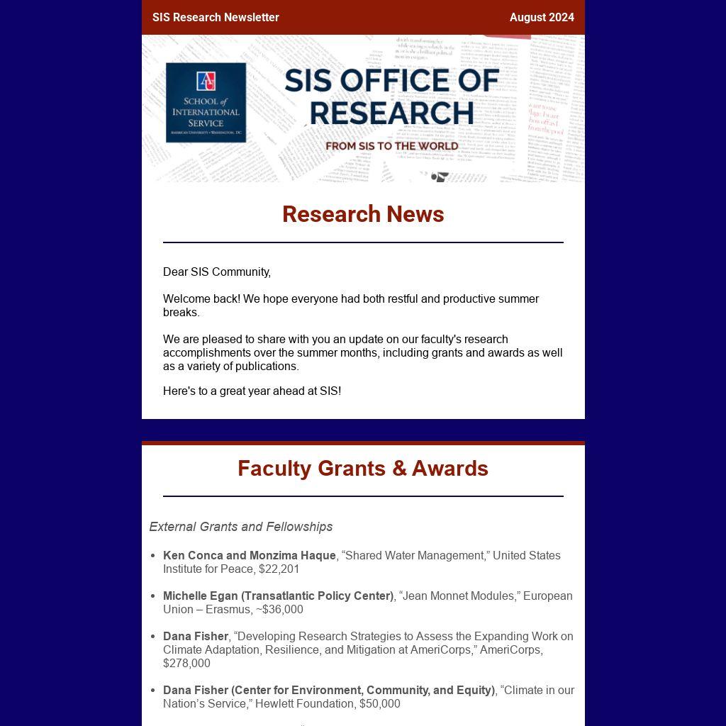 We are pleased to share with you an update on our faculty's research accomplishments over the summer months, including grants and awards as well as a variety of publications.