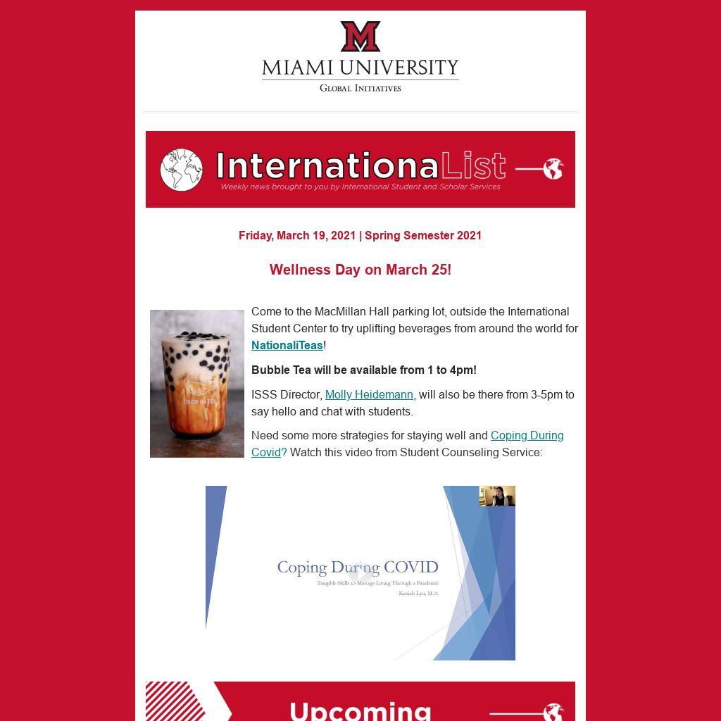ISSS staff will present relevant info for international students continuing on campus, returning to campus, or starting at Miami for Fall 2021.