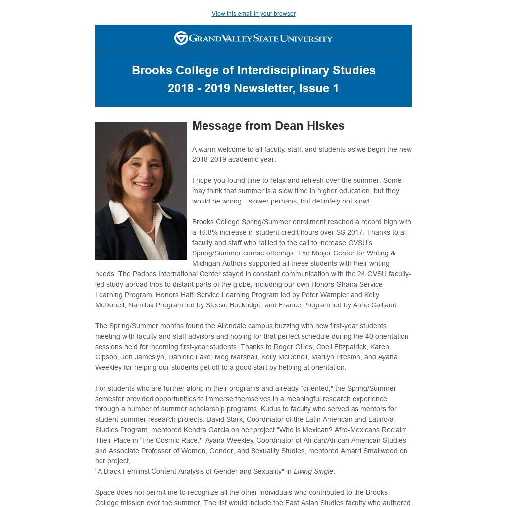 Brooks College Spring/Summer enrollment reached a record high with a 16.8% increase in student credit hours over SS 2017. Thanks to all faculty and staff who rallied to the call to increase GVSU’s Spring/Summer course offerings. The Meijer Center for Writing & Michigan Authors supported all these students with their writing needs. The Padnos International Center stayed in constant communication with the 24 GVSU faculty-led study abroad trips to distant parts of the globe, including our own Honors Ghana Service Learning Program, Honors Haiti Service Learning Program led by Peter Wampler and Kelly McDonell, Namibia Program led by Steeve Buckridge, and France Program led by Anne Caillaud.