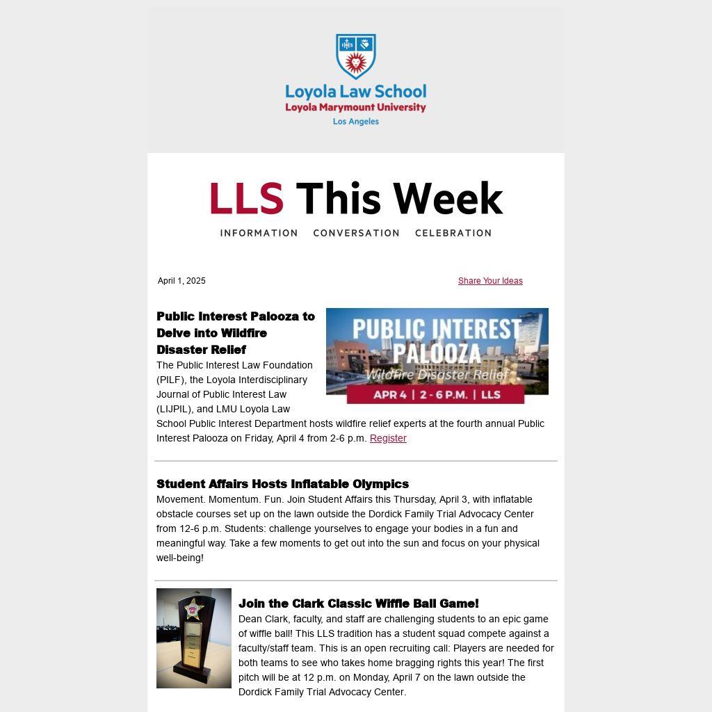 Dean Clark, faculty, and staff are challenging students to an epic game of wiffle ball! This LLS tradition has a student squad compete against a faculty/staff team. This is an open recruiting call: Players are needed for both teams to see who takes home bragging rights this year! The first pitch will be at 12 p.m. on Monday, April 7 on the lawn outside the Dordick Family Trial Advocacy Center.