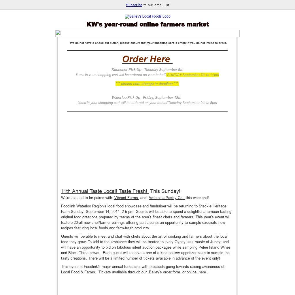 Foodlink Waterloo Region's local food showcase and fundraiser will be returning to Steckle Heritage Farm Sunday, September 14, 2014, 2-5 pm. Guests will be able to spend a delightful afternoon tasting original food creations prepared by teams of the area's finest chefs and farmers. This year's event will feature 20 all-new chef/farmer pairings offering participants an opportunity to sample exquisite new recipes featuring local foods and farm-fresh products.